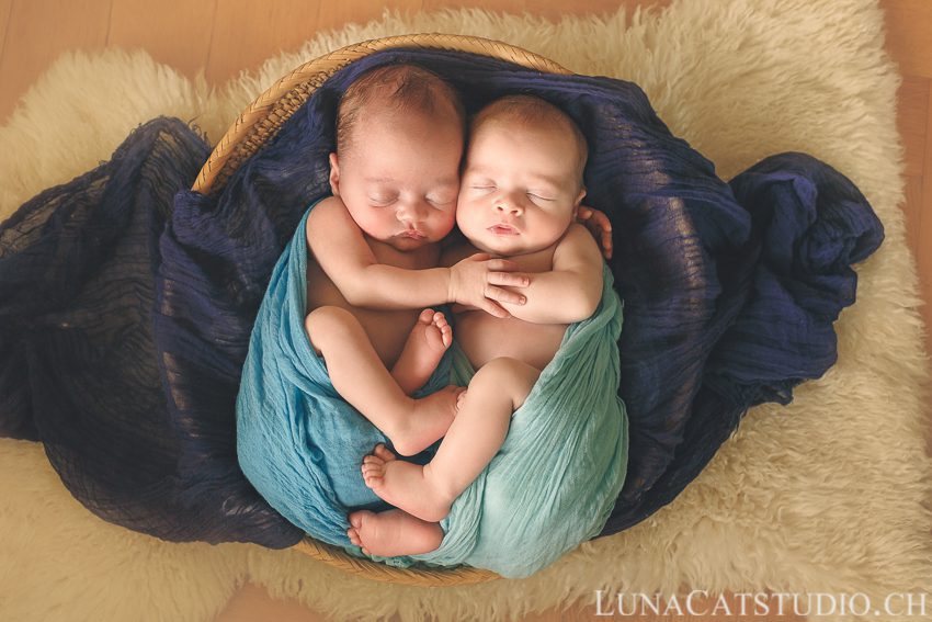 In this twin photo shoot made as a Geneva photographer, you will discover the beautiful newborn twins Alexander and Liam. I met them 3 weeks at their parents’home in Geneva for this twin newborn photo shoot. They were already 3 weeks old newborn twins but twins, usually premature, sleep longer and let the photographer make their twin photo shoot a little later by “cheating” a bit. Of course, it is highly recommended hiring a birth photographer for your baby twin photo shoot as the photographer needs to know how to manipulate not only one baby, but two babies at the same time.
