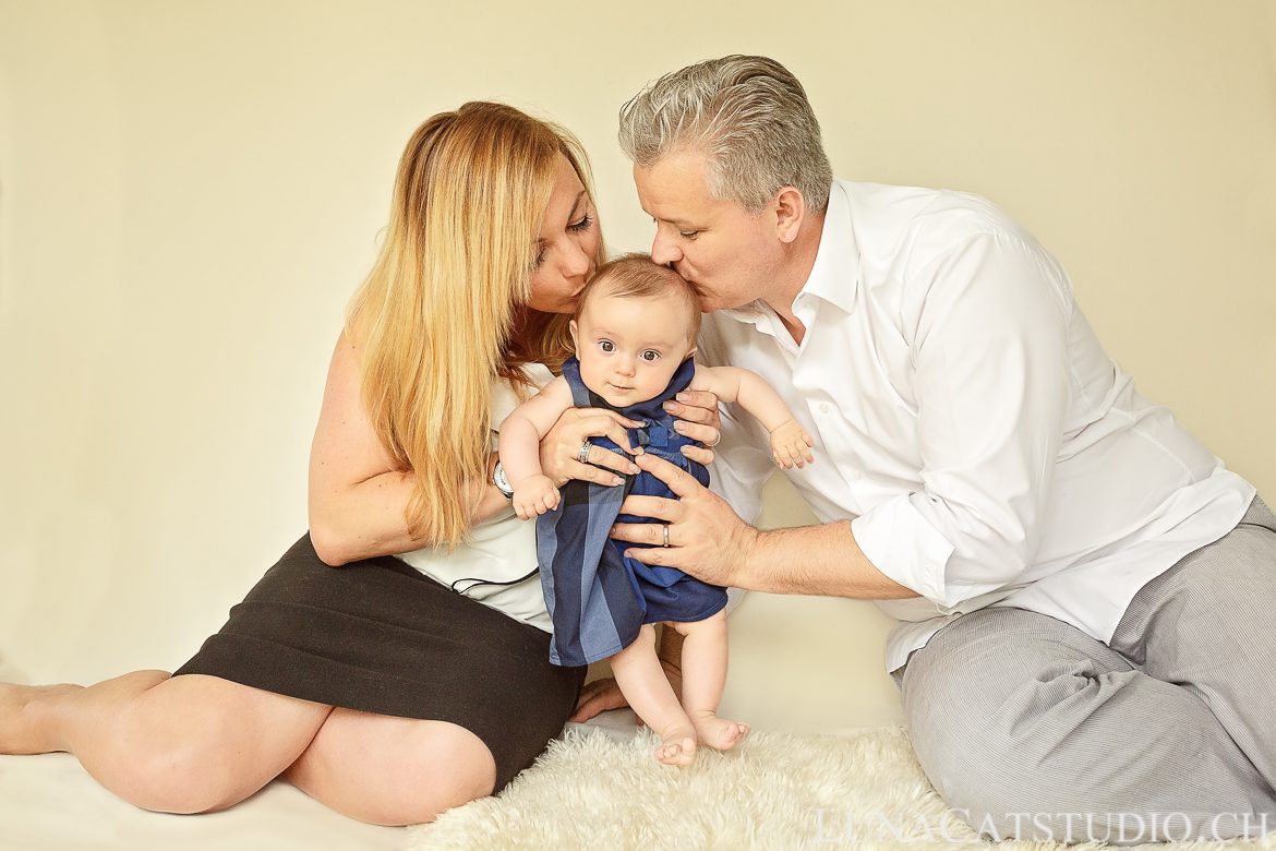 C’est ainsi que je suis retournée voir la petite Orphée pour ses 6 mois à La Chaux-de-Fonds après avoir réalisé sa séance photo nouveau-né. Quel bonheur de revoir cette famille et j’ai pu voir le faire-part de la naissance d’Orphée avec mes photos et constater que son papa avait toujours une photo de la séance photo nouveau-né d’Orphée en fond d’écran de son smartphone ;). Nous avons débuté cette séance photo bébé en intérieur avec des photos de famille, car il ne faut jamais oublier que ces photos sont aussi pour bébé plus tard (et votre enfant adorera vous voir sur les photos !).